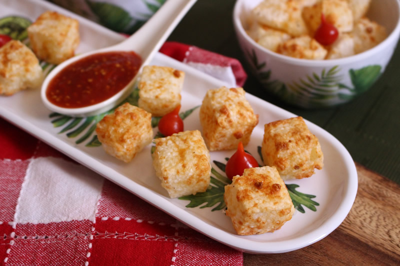 Sirva com algum tipo de geleia ou molho de pimenta. A picância dá um contraste todo especial à delicadeza e sabor suave dos dadinhos.