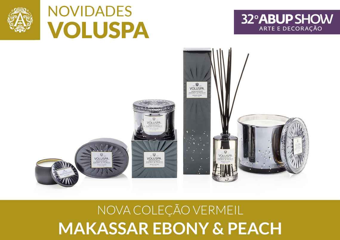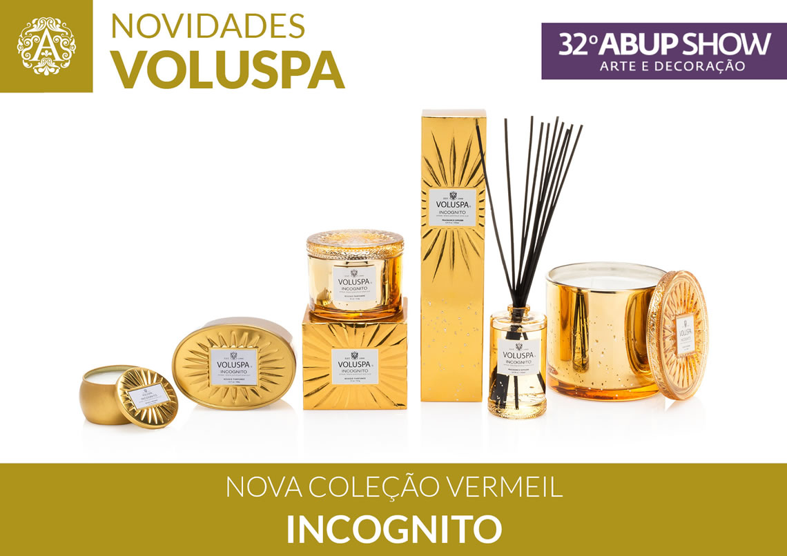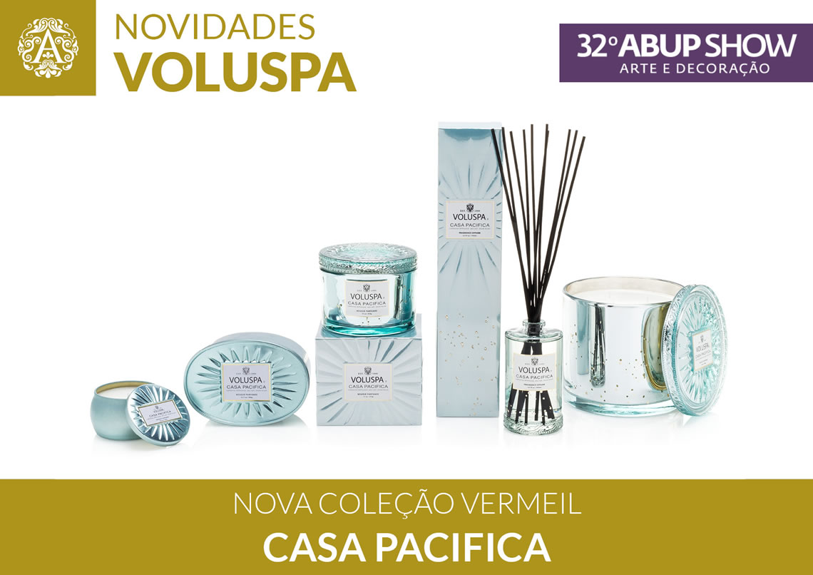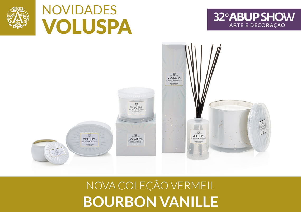 A Anova Trade estará participando do 32º ABUP SHOW, que acontece de 27 de fevereiro a 01 de março de 2016, em São Paulo, e como sempre, traz lindos lançamentos e as coleções já consagradas da marca americana Voluspa.