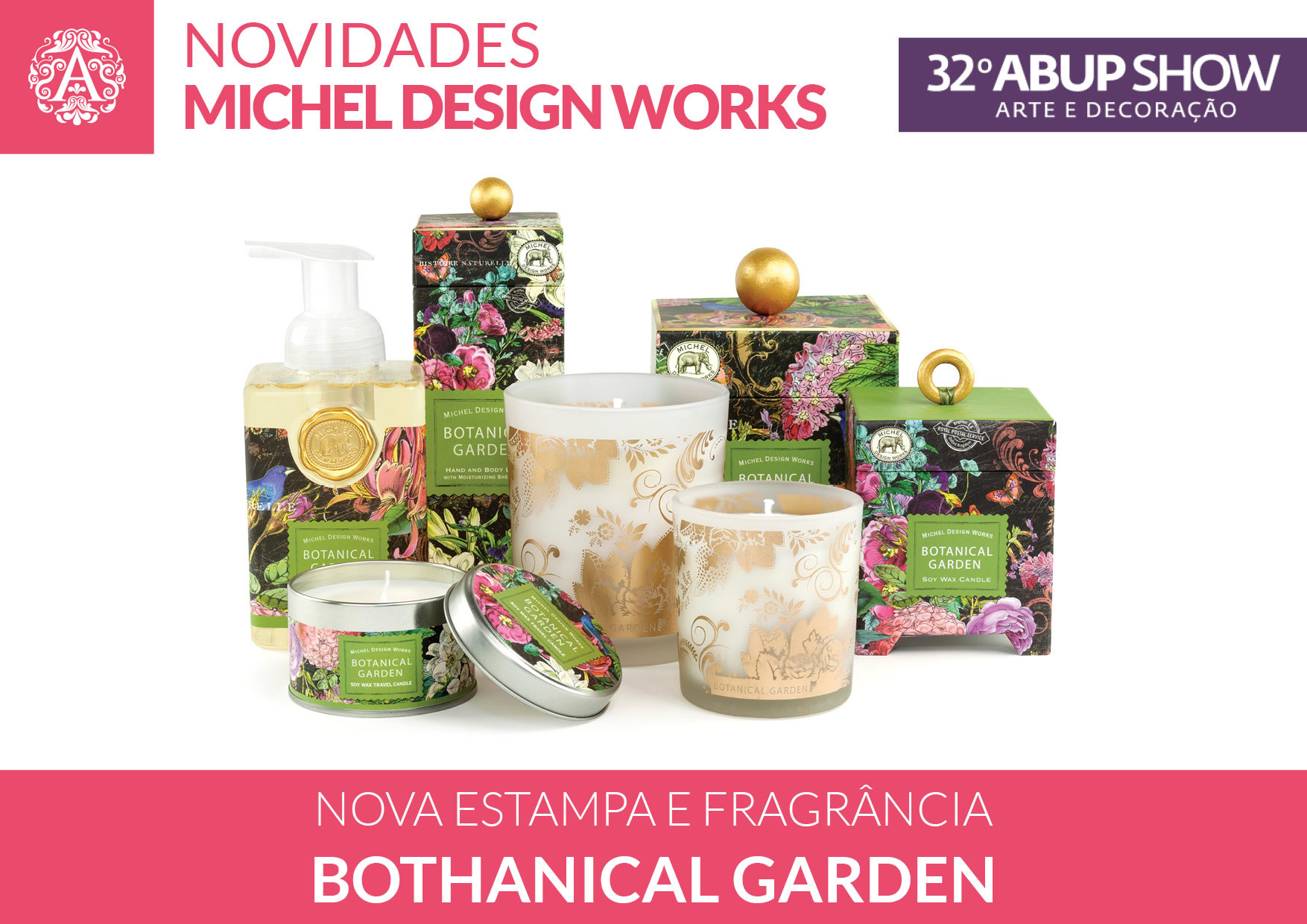A Anova Trade estará participando do 32º ABUP SHOW, que acontece de 27 de fevereiro a 01 de março de 2016, em São Paulo, e como sempre, traz novas estampas e produtos da marca americana Michel Design Works, especializada em produtos de decoração e cosméticos.