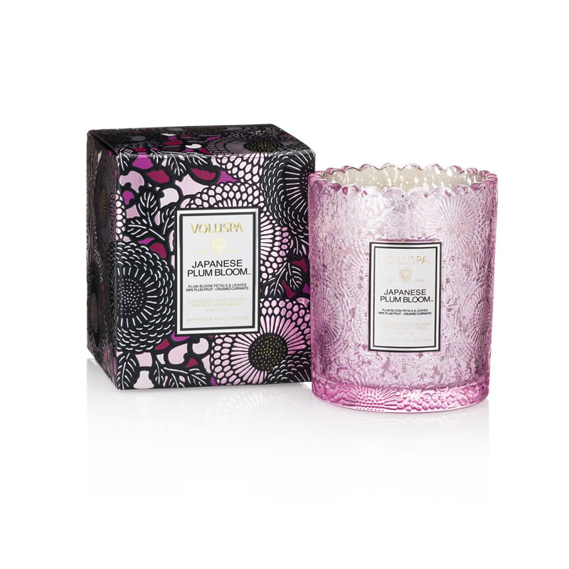 Vela Copo Trabalhado Japanese Plum Blum: Espelhada e com o copo de vidro todo trabalhado em tom rosa claro, tem um aroma delicado e fica perfeita na decoração de quartos, sala de estar e aquele Home Office de quem gosta de trabalhar num ambiente perfumado e agradável!
