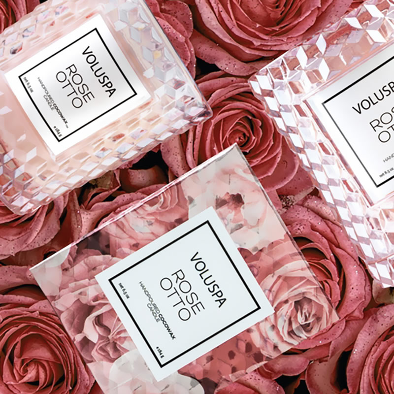 Prestando homenagem à rainha das flores, a VOLUSPA criou a Roses Collection, que apresenta 5 novas fragrâncias contendo o perfume dessa magnífica flor. Como cada flor de rosa é diferente e cada lote do óleo essencial também (o mais desejado de todos é conhecido como Rose Otto), é uma verdadeira arte colocar todas as nuances de uma rosa dentro de uma embalagem, ou dentro da melhor vela.