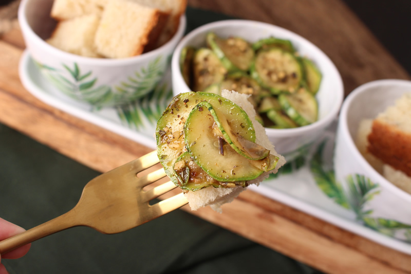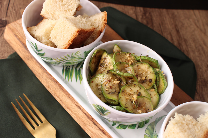E agora que você já entendeu e sabe tudo sobre pratos e etapas da culinária italiana, vamos à nossa receita de antepasto de abobrinha?