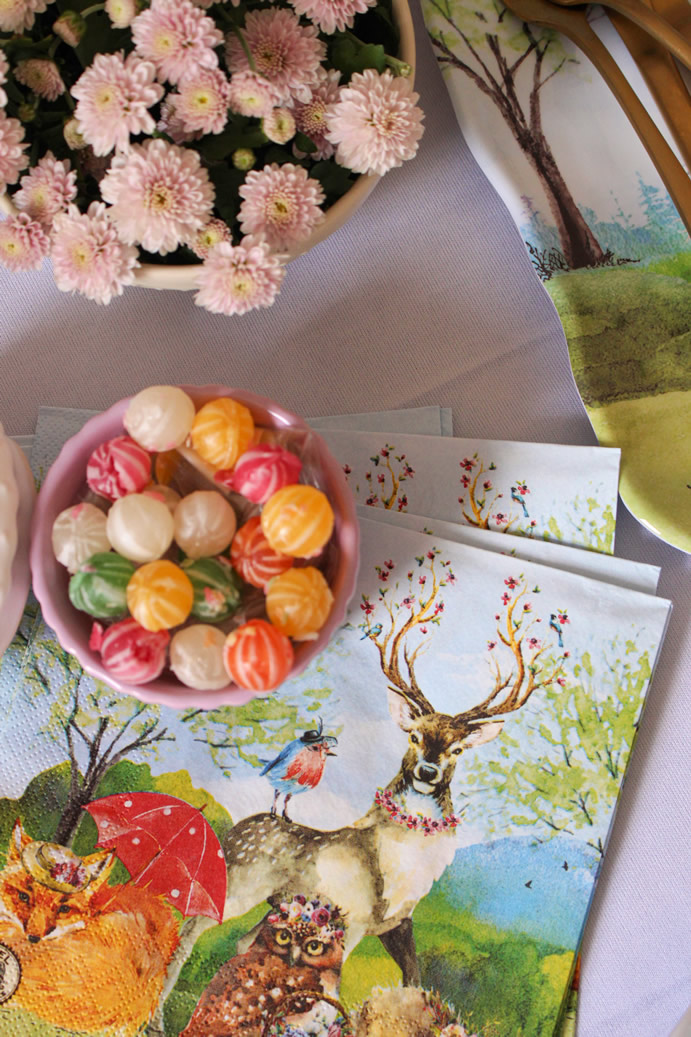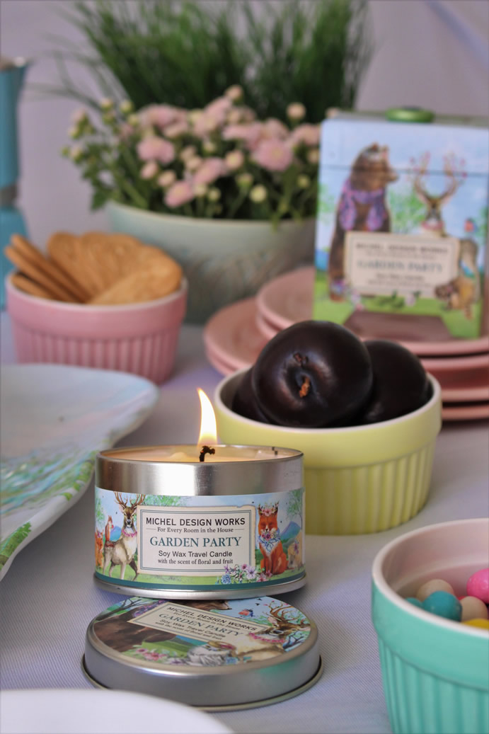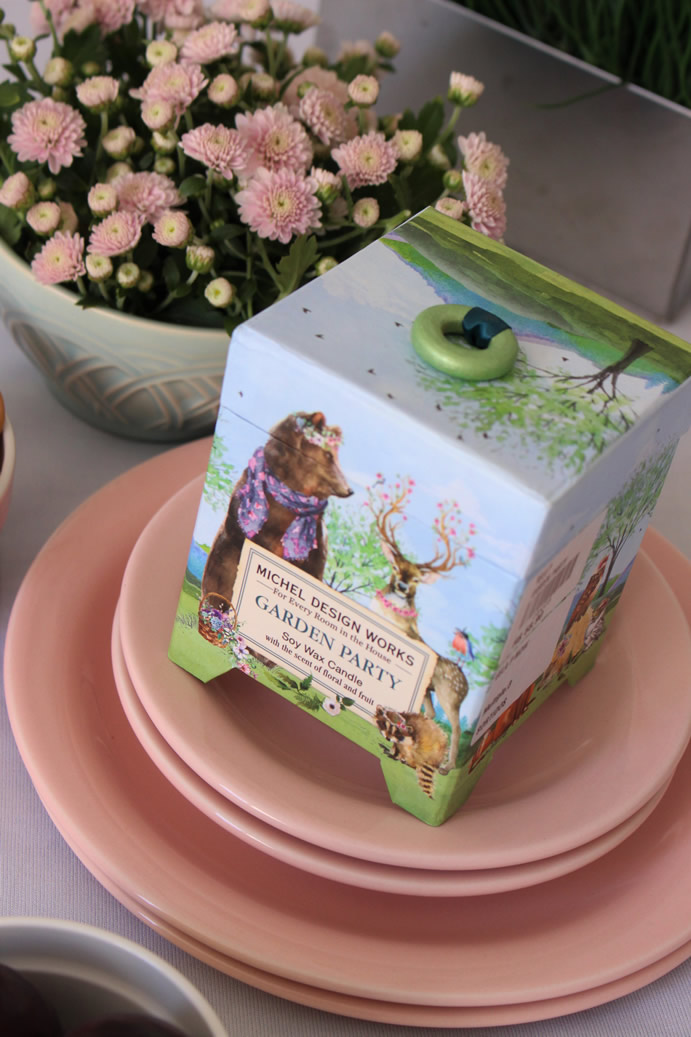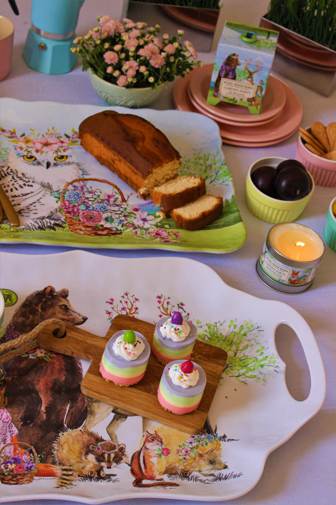 Como receita escolhi um Mini Cheesecake Colorido que não precisa de forno, além de algumas frutas, doces e um bolinho. E para deixar a produção completa, usei a Coleção Garden Party da marca Michel Design Works que é repleta dos bichinhos mais encantadores que você já viu!