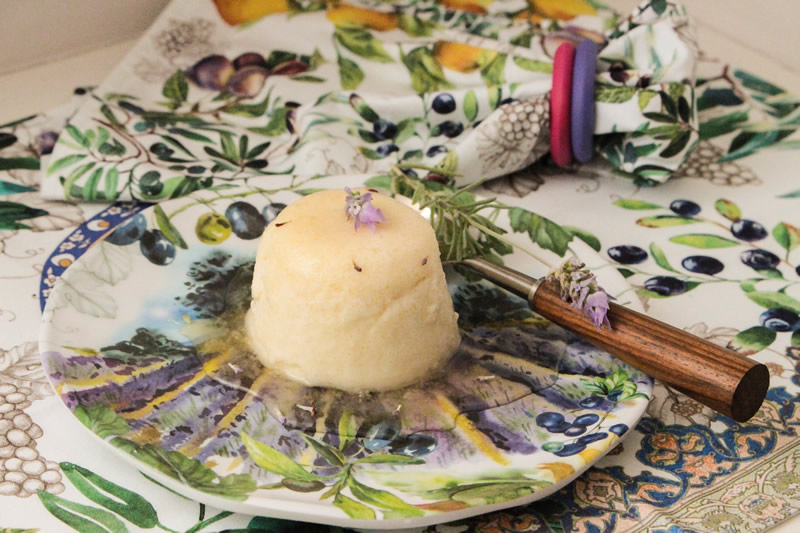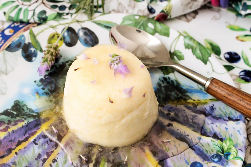Aproveitei a referência então para preparar um doce típico da região e que começou a conquistar os corações brasileiros há pouco tempo. A receita é de uma PANNA COTTA COM CALDA DE LAVANDA.