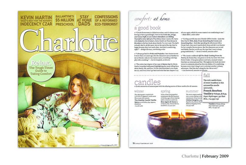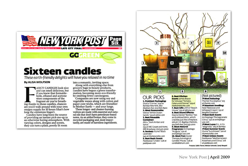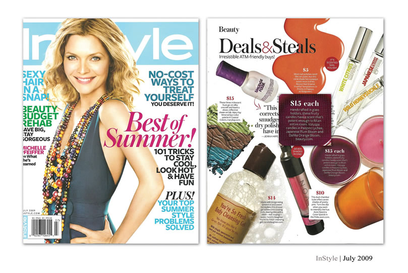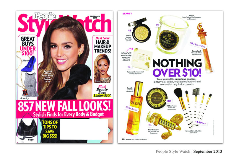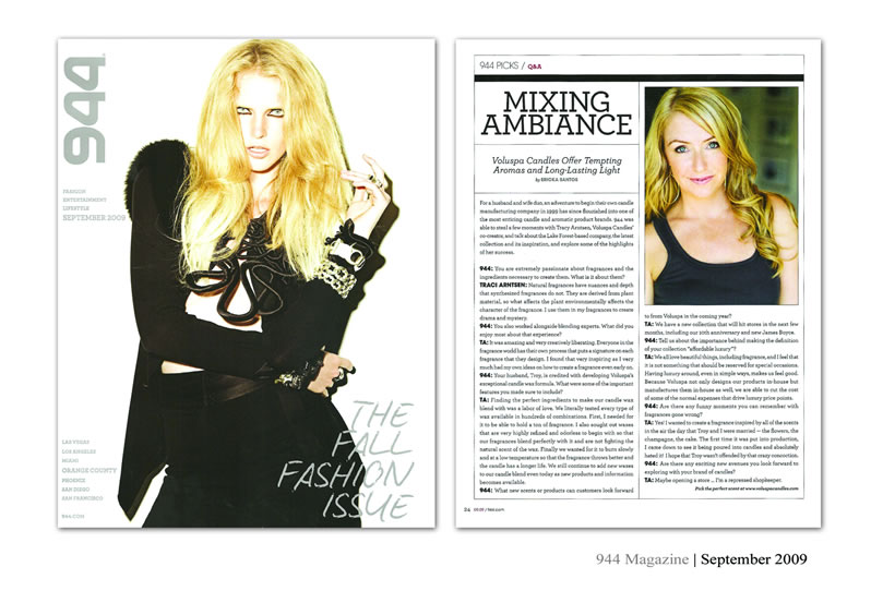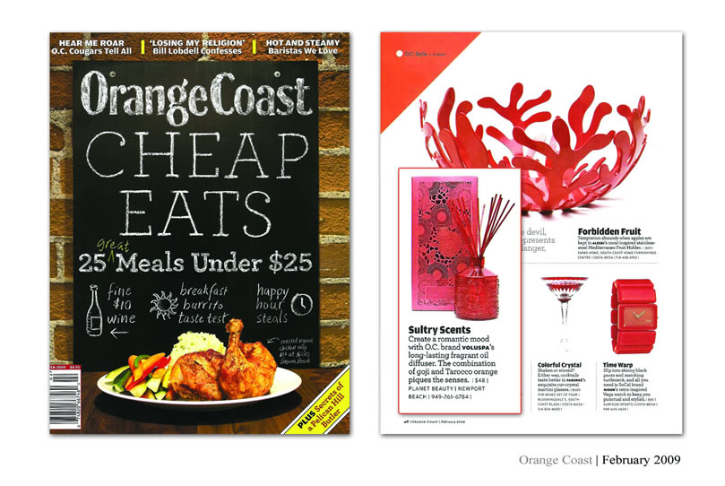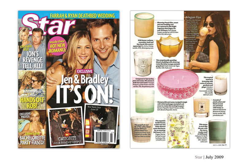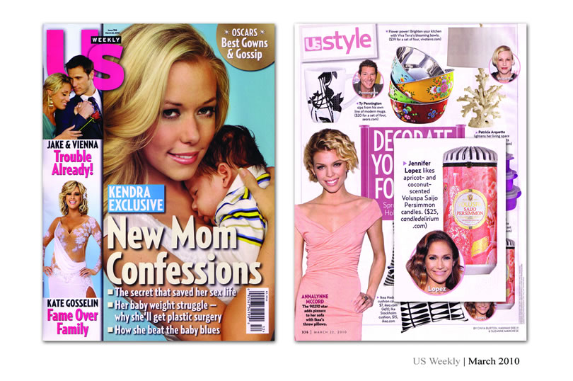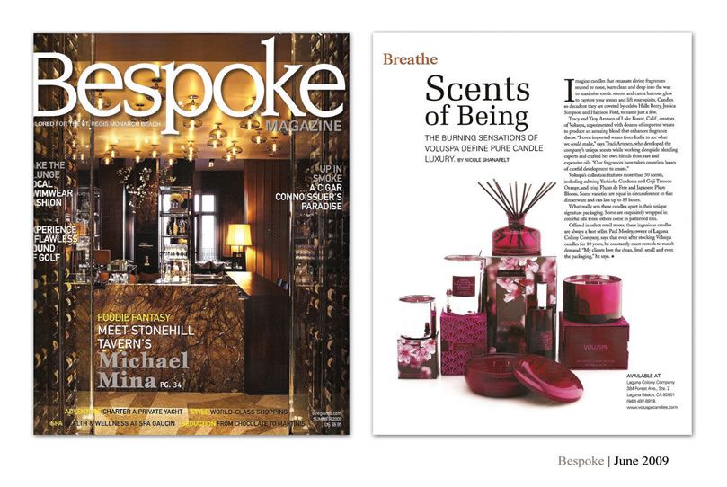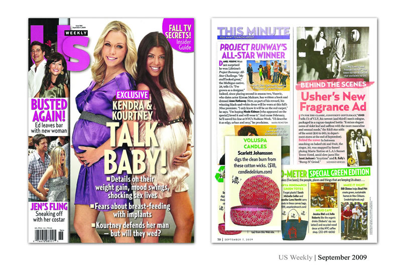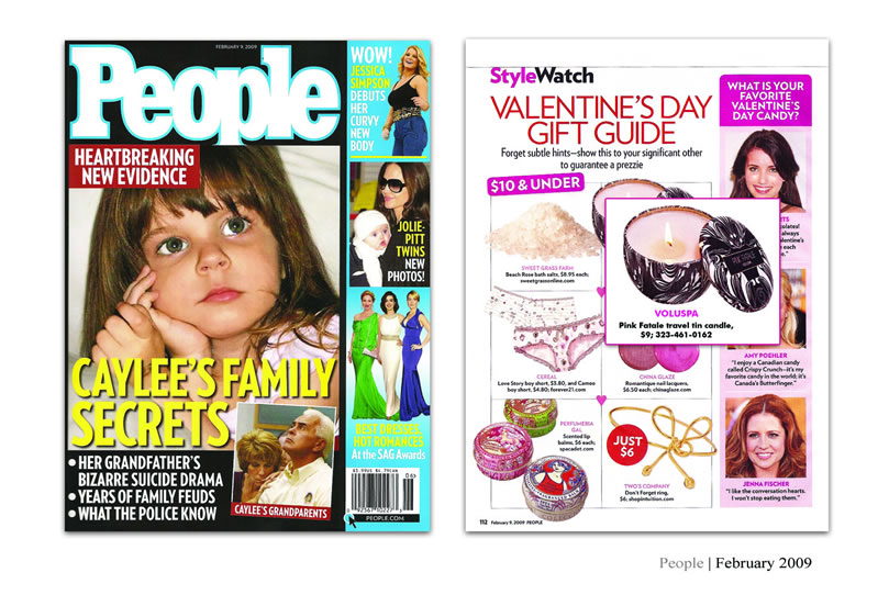 Abaixo estão algumas aparições de produtos e da marca Voluspa na imprensa americana entre 2009 e 2013. São revistas de celebridades, comportamento, decoração e estilo de vida que dão destaque às velas Voluspa.