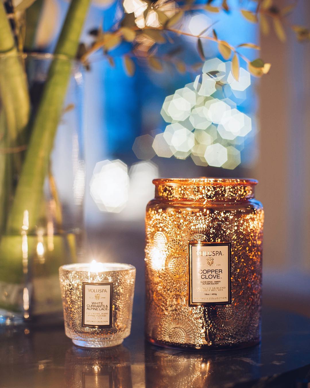 Para o primeiro semestre de 2019 e já pensando no outono e inverno, a VOLUSPA lança duas novas fragrâncias da coleção Japonica: a Copper Clove representando o outono e a White Currants & Alpine Lace representando o inverno.